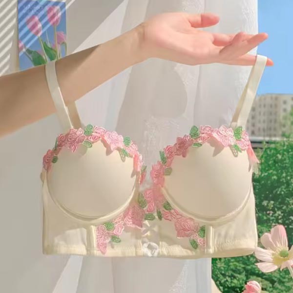 New French Retro Sexy Lace Sweet Floral Embroidery Bra Push-up Bra